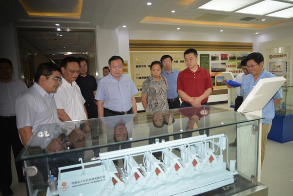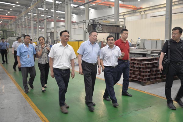6月23日下午,國資委派駐恒天集團的監(jiān)事會主席杜淵泉一行在中國恒天集團公司副總裁李曉紅,中紡機副總經(jīng)理、鄭州紡機總經(jīng)理李泉以及中紡機副總石廷洪的陪同下到我公司調(diào)研考察。公司總經(jīng)理杜榮念、黨委書記張鳳和、黨委副書記、工會主席、紀委書記郝衛(wèi)忠、副總經(jīng)理邱進才等陪同杜淵泉考察并報告工作。