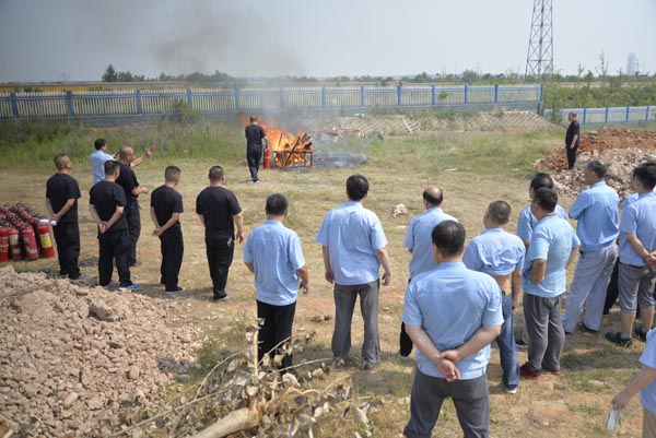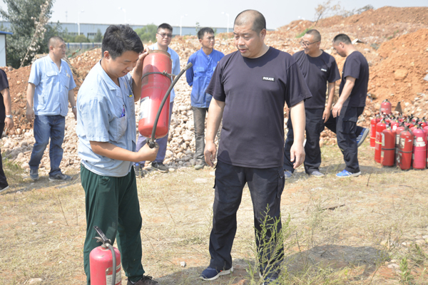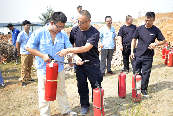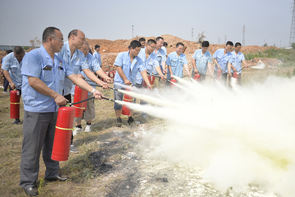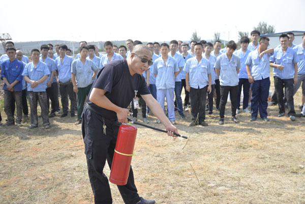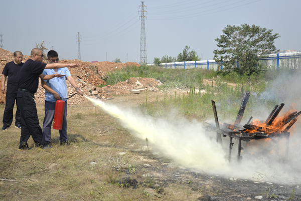 演習(xí)人員首先列隊(duì)來(lái)到聯(lián)合廠房西側(cè)的土坡上,早有消防科的人員在空曠的地方堆起了柴火。消防人員為參演的義務(wù)消防員講解了滅火器的正確使用方法后,隨著“砰”的一聲,消防人員點(diǎn)燃了火堆,洶洶的烈火伴隨著噼里啪啦的聲音燃燒了起來(lái)。只見義務(wù)消防員們一個(gè)個(gè)拿起滅火器,對(duì)著火堆一陣陣噴射,隨著一團(tuán)團(tuán)干粉的噴出,火焰被迅速撲滅。通過生動(dòng)的現(xiàn)場(chǎng)實(shí)戰(zhàn)訓(xùn)練,使大家進(jìn)一步掌握了滅火氣的使用方法和滅火中人員應(yīng)該站的位置以及保持與火源的安全距離。