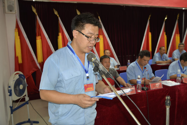 8時15分,會議在雄壯的國歌聲中正式拉開序幕,邯鄲宏大公司總經(jīng)理杜榮念向大會致詞。