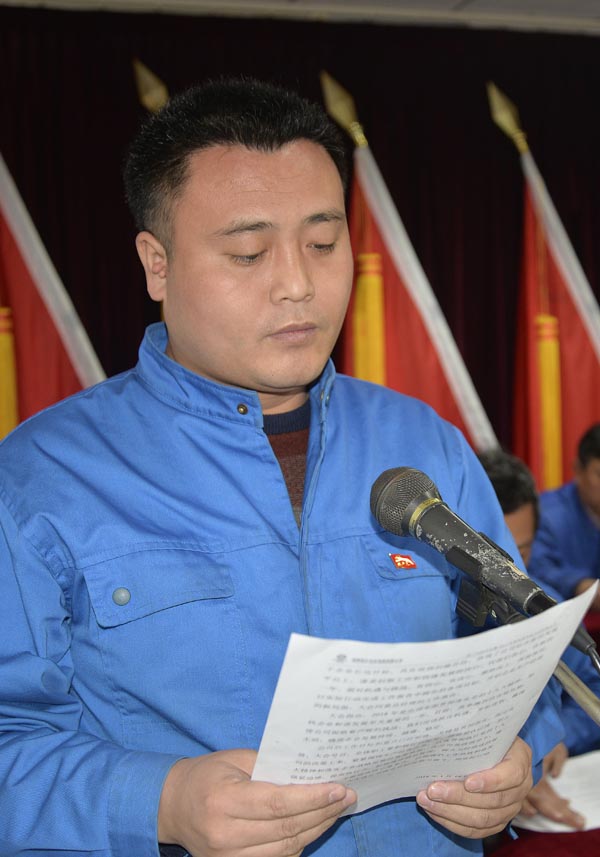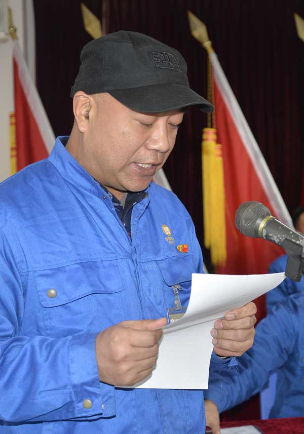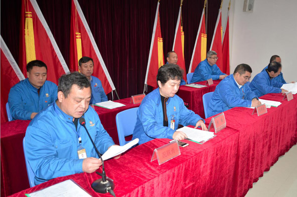 會(huì)議開(kāi)始,高奏國(guó)歌。公司副總經(jīng)理王長(zhǎng)武宣讀關(guān)于表彰2017年度先進(jìn)集體、先進(jìn)個(gè)人的決定以及公司黨委表彰2017年度先進(jìn)黨支部、黨員先鋒崗、優(yōu)秀黨員及優(yōu)秀黨務(wù)工作者的決定。