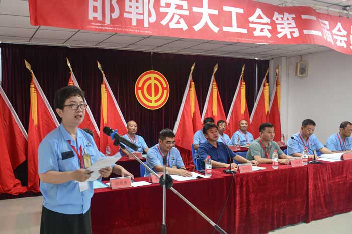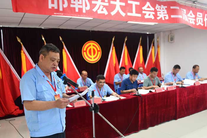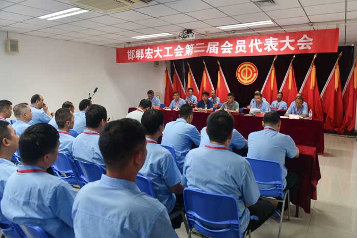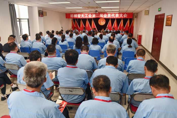 2022年8月18日上午,邯鄲宏大工會第二屆會員代表大會在辦公樓四樓會議室隆重舉行。會議由工會副主席何巍主持。