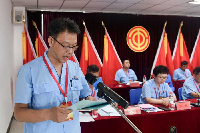 黨群部部長孟慶瑞宣讀恒天重工工會《賀信》