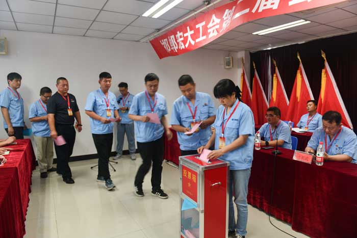 大會選舉況聯(lián)勇為第二屆工會主席,何巍、孟慶瑞為副主席,同時還選舉產生了邯鄲宏大工會第二屆委員會和經費審查委員會。來自基層的57名正式代表參加了大會。