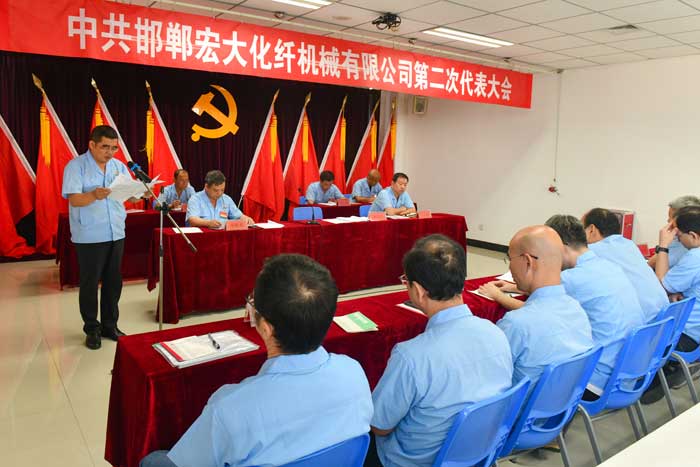 在喜迎黨的二十大召開之際,2022年9月26日,邯鄲宏大化纖機(jī)械有限公司召開第二次黨員代表大會。