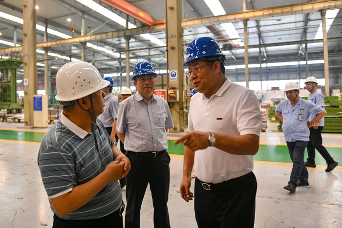 金永傳一行深入企業(yè)一線,先后參觀了邯鄲宏大生產(chǎn)制造車間和企業(yè)展廳,詳細(xì)考察了企業(yè)的現(xiàn)場(chǎng)管理、生產(chǎn)經(jīng)營(yíng)、產(chǎn)品研發(fā)和市場(chǎng)開(kāi)拓等情況,并主持開(kāi)展現(xiàn)場(chǎng)座談交流。會(huì)上,恒天重工、邯鄲宏大、邵陽(yáng)紡機(jī)分別就本企業(yè)相關(guān)情況進(jìn)行了匯報(bào),與會(huì)人員堅(jiān)持問(wèn)題導(dǎo)向、實(shí)事求是,對(duì)當(dāng)前制約化纖裝備發(fā)展的主要問(wèn)題與困難進(jìn)行了深入探討,形成了指導(dǎo)性意見(jiàn)與針對(duì)性建議,為進(jìn)一步推進(jìn)化纖裝備高質(zhì)量發(fā)展打下良好基礎(chǔ)。
