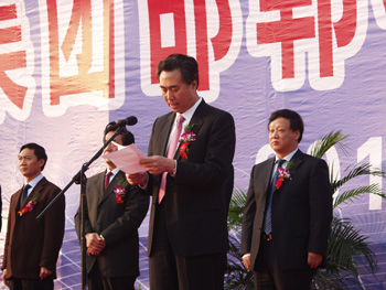 邯鄲市市委書記崔江水代表市委、市政府發(fā)表了熱情洋溢的講話:恒天邯鄲特種纖維設(shè)備基地正式開工建設(shè),是落實(shí)省戰(zhàn)略合作框架的具體步驟,是促進(jìn)邯鄲乃至全省產(chǎn)業(yè)優(yōu)化升級(jí)、加快轉(zhuǎn)變經(jīng)濟(jì)發(fā)展方式的一項(xiàng)重大舉措。最近河北省政府批準(zhǔn)成立“邯鄲冀南新區(qū)”治理打造全省的又一大經(jīng)濟(jì)增長(zhǎng)極,以現(xiàn)代裝備制造產(chǎn)業(yè)為主導(dǎo)的發(fā)展定位,為全市發(fā)展創(chuàng)造了歷史性機(jī)遇,為雙方搭建了合作的平臺(tái),提供了廣闊的空間。崔江水希望恒天集團(tuán)加快開工項(xiàng)目建設(shè)步伐,早日建成投產(chǎn)。同時(shí)發(fā)揮自身優(yōu)勢(shì),積極參與冀南新區(qū)建設(shè),不斷擴(kuò)大在邯投資,進(jìn)一步加快集團(tuán)的發(fā)展步伐。邯鄲市將積極為恒天集團(tuán)在邯發(fā)展和項(xiàng)目建設(shè)創(chuàng)造良好的環(huán)境,提供優(yōu)質(zhì)服務(wù),推動(dòng)雙發(fā)優(yōu)勢(shì)互補(bǔ)、共同進(jìn)步、不斷譜寫合作、友誼、發(fā)展、共贏的新篇章。