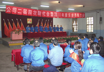 公司二屆四次職代會暨2011年度先進表彰大會于元月11日在多功能廳隆重召開。一元復始,萬象更新,職工代表齊聚一堂,群賢畢至、集思廣益、建言獻策,共同謀劃企業(yè)發(fā)展大計。