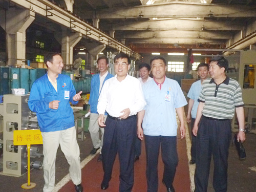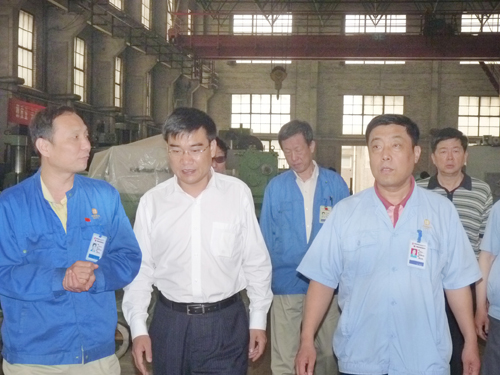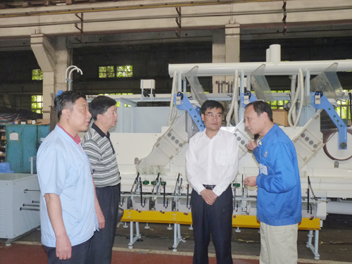 隨后,荊主席一行在我公司黨委書記張鳳和、副總經(jīng)理郝渝江等人的陪同下,對機(jī)三、機(jī)一、機(jī)四分廠生產(chǎn)現(xiàn)場進(jìn)行了視察。在總裝分廠荊主席對我公司的參展產(chǎn)品KR/HD340粘膠長絲連續(xù)紡絲機(jī)進(jìn)行了詳細(xì)的了解,并對我公司的發(fā)展前景提出了寶貴意見。