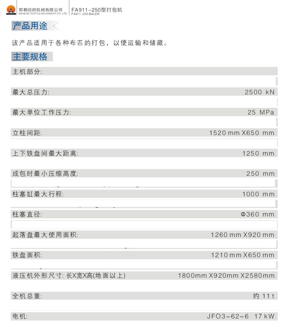 FA911-250型 液壓打包機(jī)