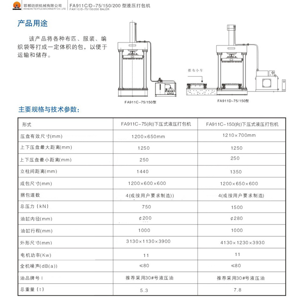 FA911C-75.150.200 型液壓打包機(jī)